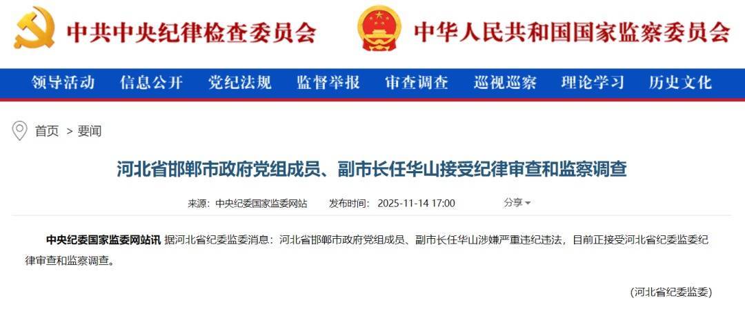 据河北省纪委监委消息:河北省邯郸市政府党组成员、副市长任华山涉嫌严重违纪违法A股策略,目前正接受河北省纪委监委纪律审查和监察调查。