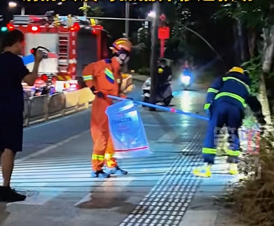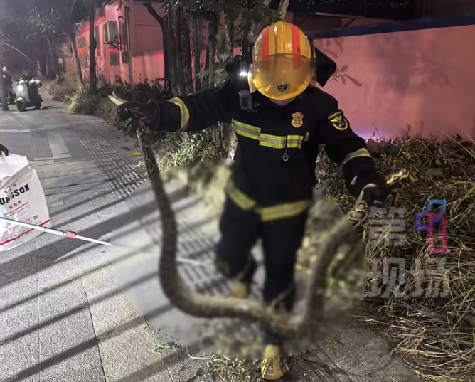 龙华消防大队新石小型站副站长何武椹:“我们目测了一下,蟒蛇的重量大概二十斤、两米多长。目击群众说它被车辆碾压,尾部受伤。后来我们打电话,将其移交给动物保护中心协会处理。”